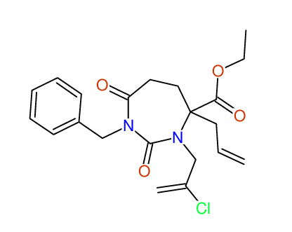 Ethyl 4-allyl-1-benzyl-3-(2-chloroprop-2-enyl)-2,7-dioxo-1,3-diazepane-4-carboxylate Chem.Commun., 2005, 4477 - 4478 |