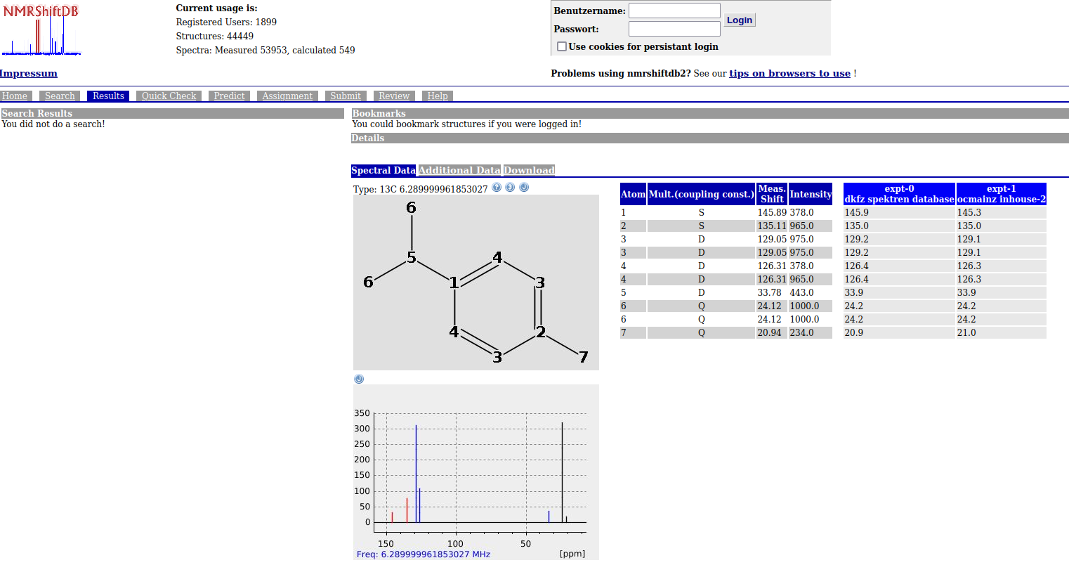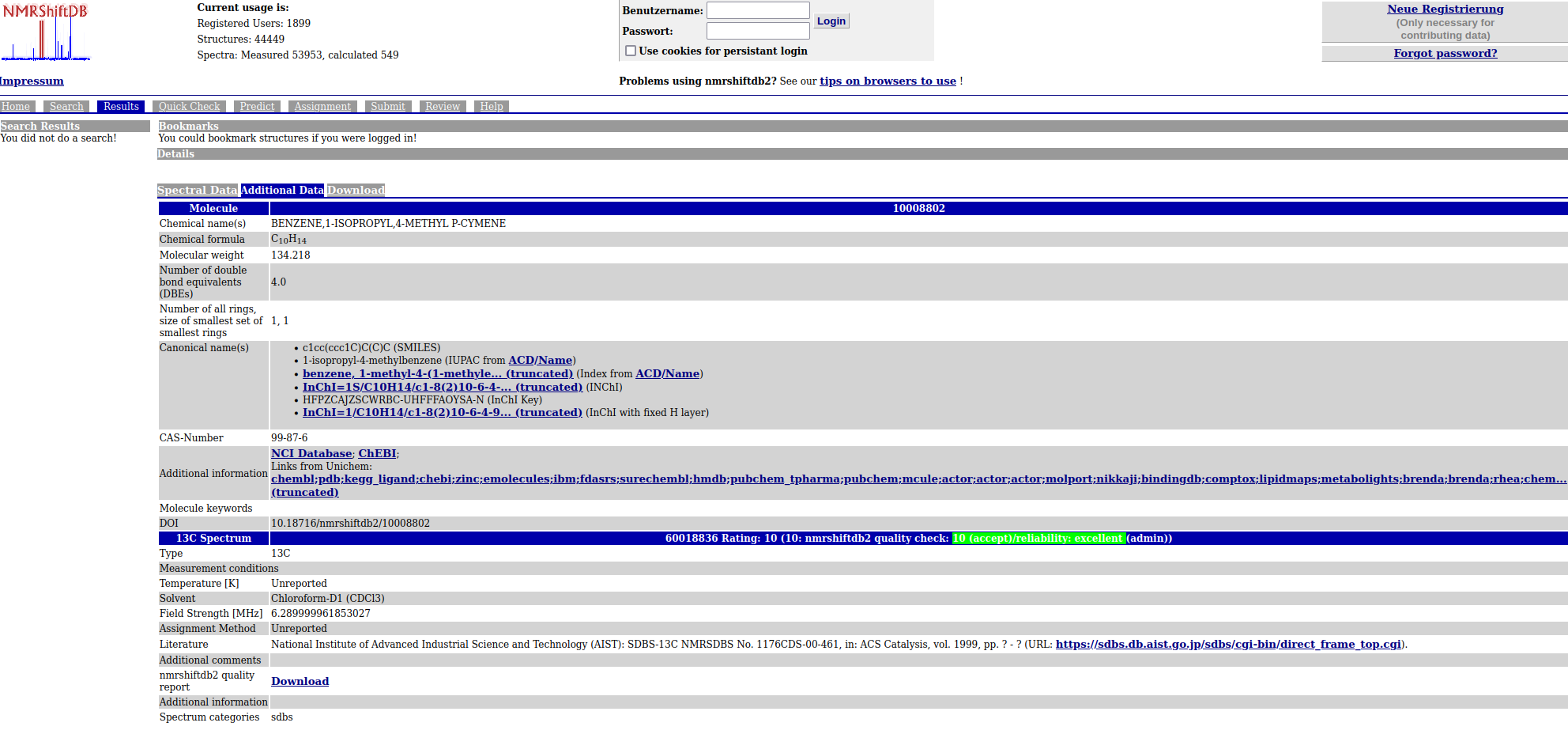 When clicking the tab "Additional Data" the same value is repeated - obviously wrong, but at least consistent within NMRShiftDB !