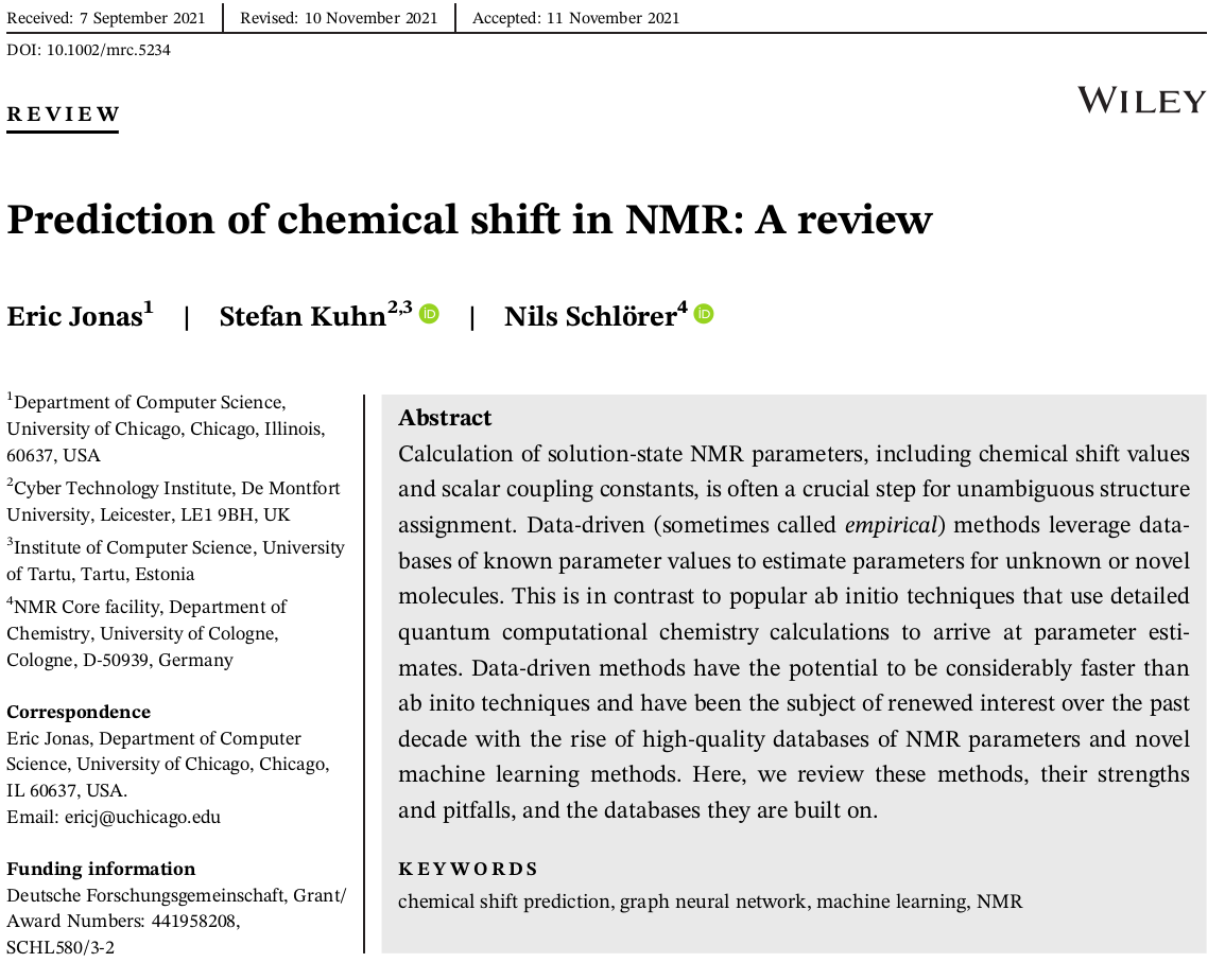 A review on "Prediction of chemical shift in NMR" was published by Jonas, Kuhn and Schlörer